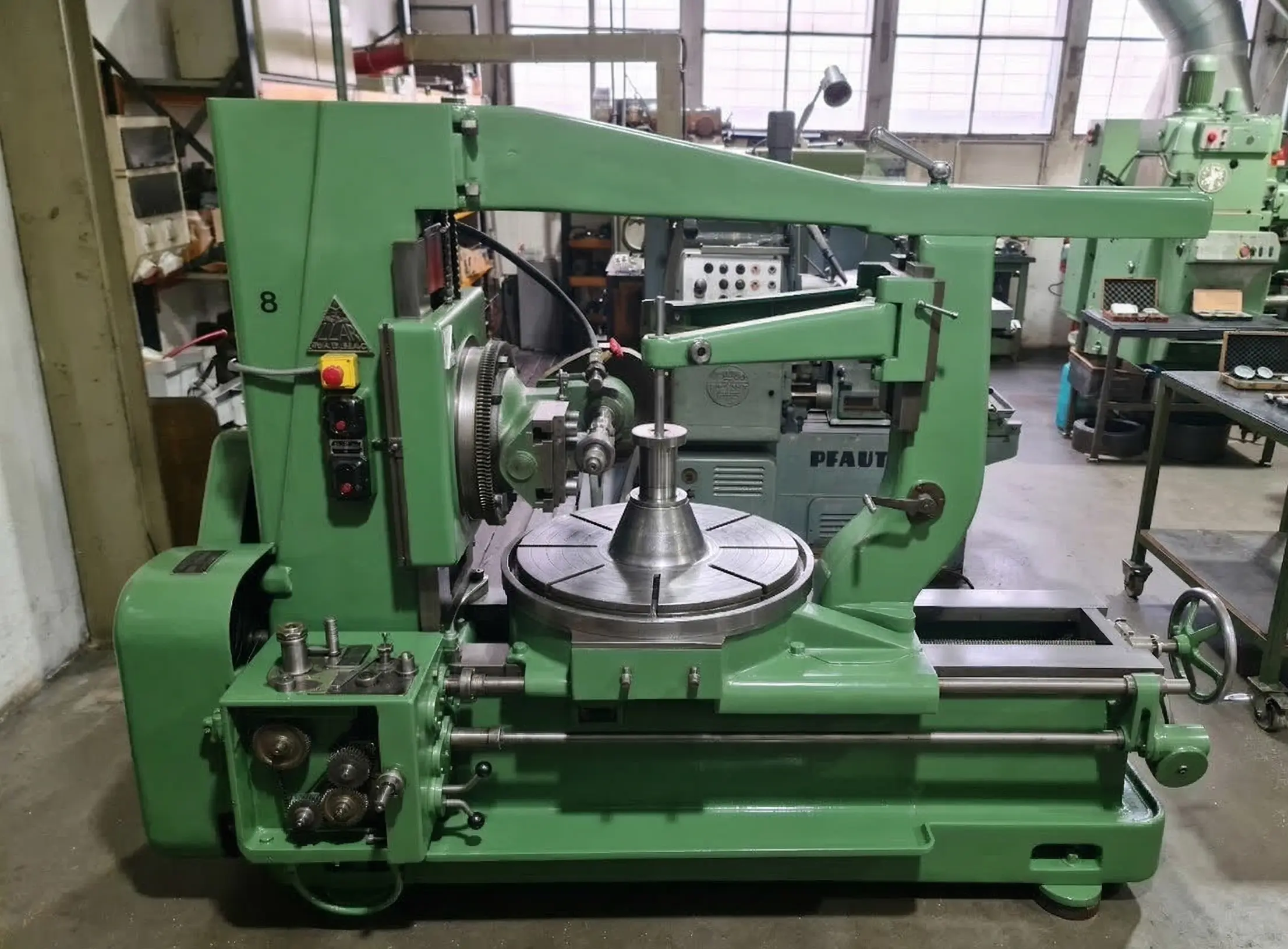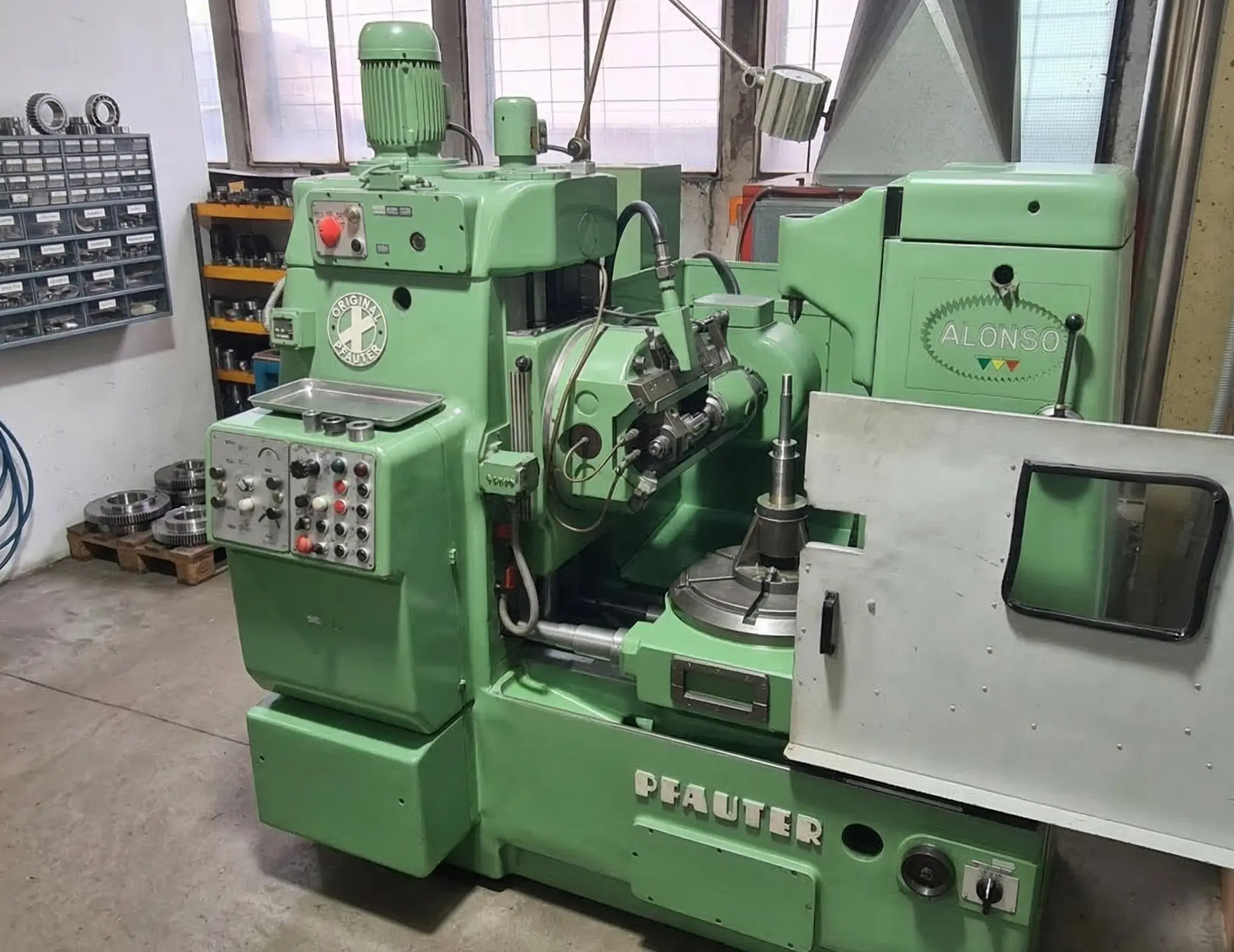 Talladora de engranajes Pfauter, destinada al mecanizado de engranajes de pequeño y medio tamaño mediante proceso de generación. Esta máquina permite realizar tallados con gran precisión y rapidez, siendo especialmente adecuada para piezas de transmisión utilizadas en maquinaria industrial.